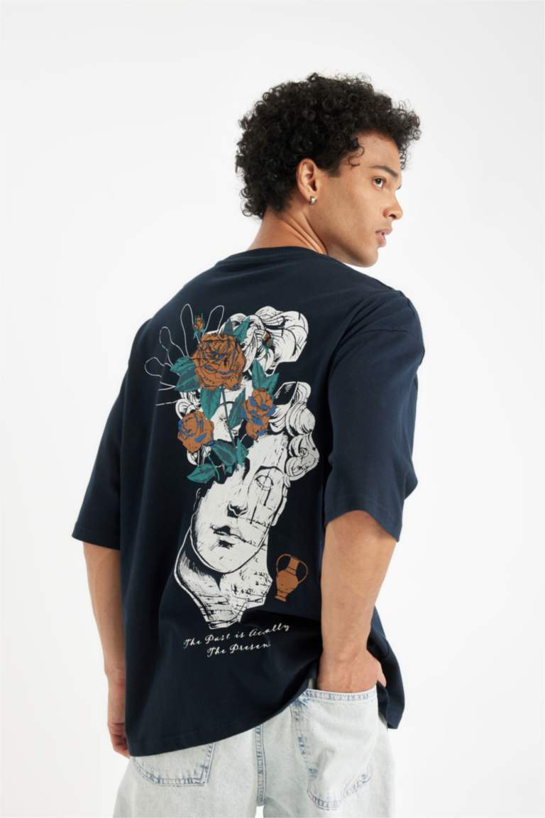 Синий Мужчины Футболка с круглым вырезом с принтом 3158552