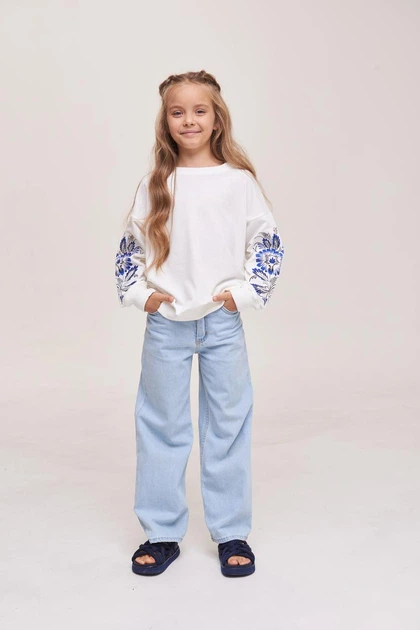 Світшот для дівчинки MEREZHKA "Волошка" білий, розмір 134 по зросту