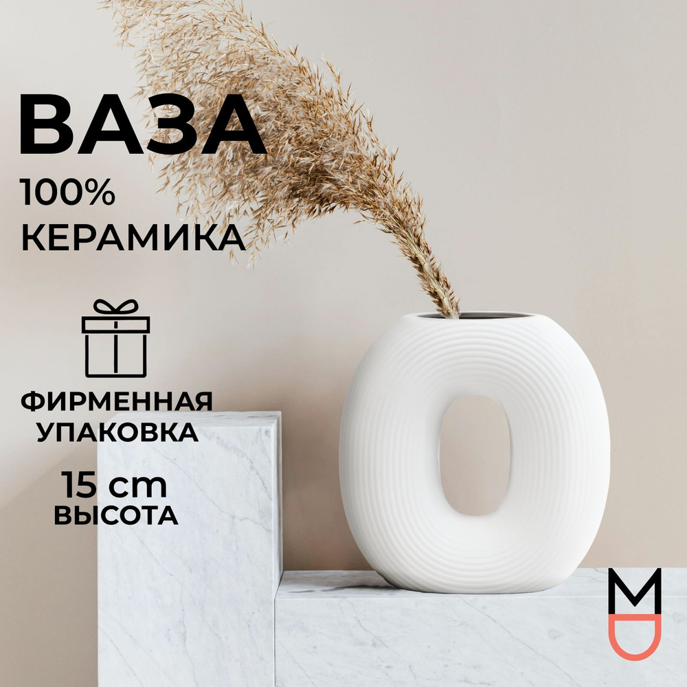 Белая ваза для цветов и сухоцветов из керамики декоративная напольная