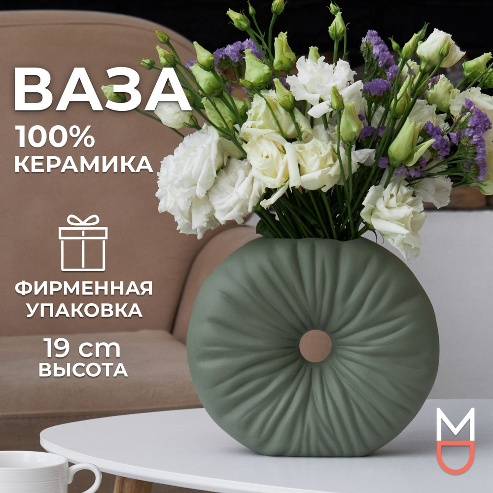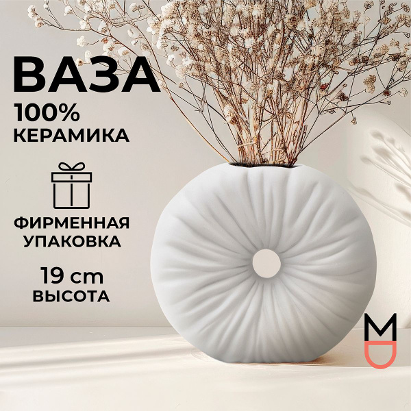 Ваза декоративная для цветов и сухоцветов 27 см/ Ваза керамическая