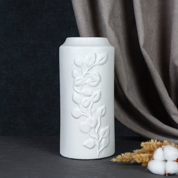Ваза декоративная интерьерная керамическая Бруно белая для цветов