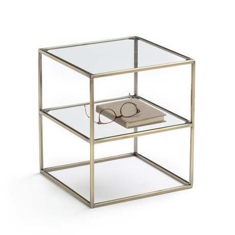 Прикроватный столик с двумя столешницами Luxore. Простота линий и элегантность стекла и латуни ! Характеристики прикроватного столика с двумя столешницами Luxore :