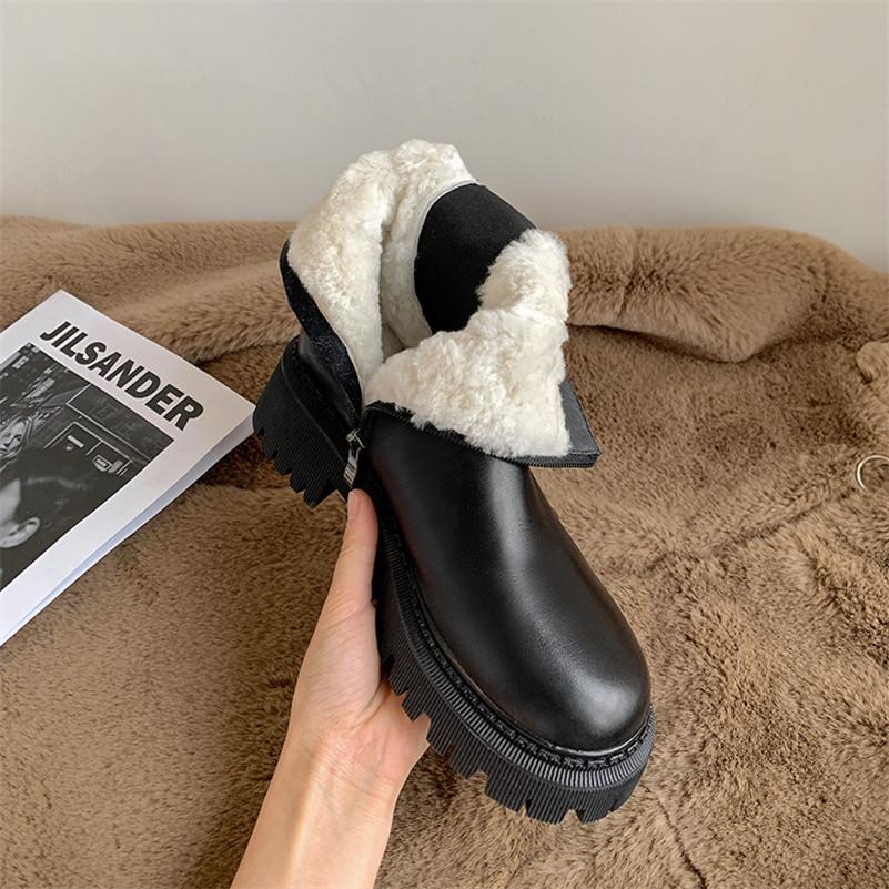 Женские ботильоны из натуральной кожи на толстом меху, размеры 34-39