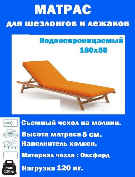 Матрас для шезлонга шезлонги_оранжевый, Беспружинный, 55