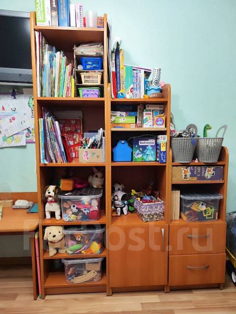 Детский уголок, стенка пенал, стол, коричневый, б/у, в наличии. Цена