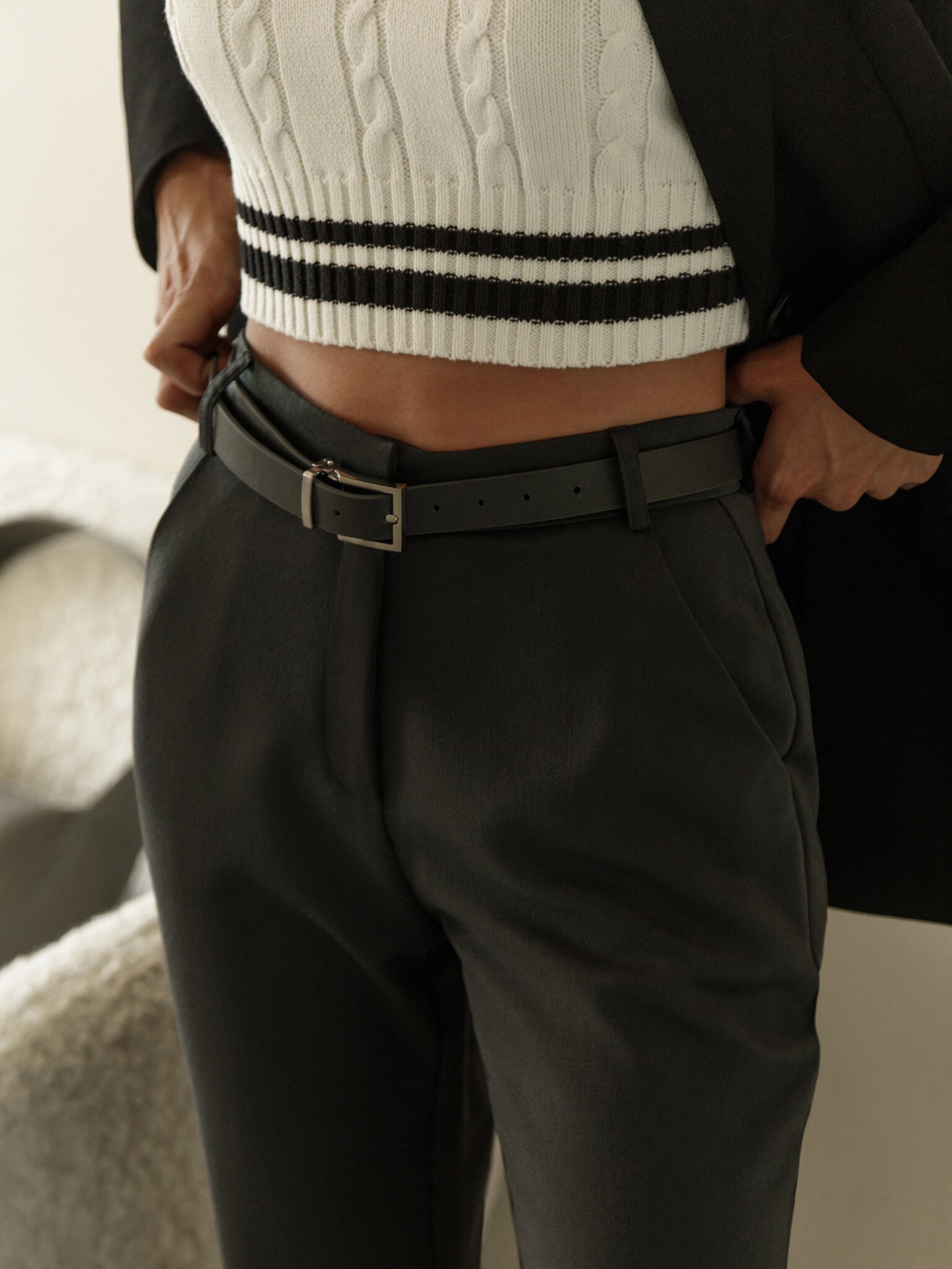 Расклешенные брюки с ремнем из экокожи :: LICHI