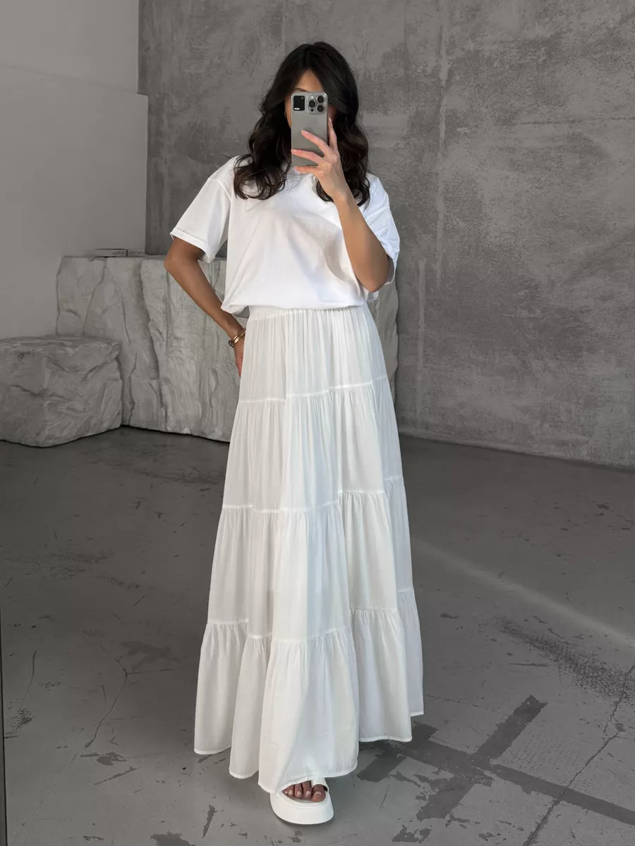 Расклешенная кружевная юбка макси с воланами :: LICHI